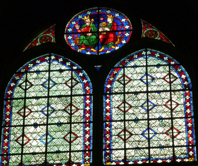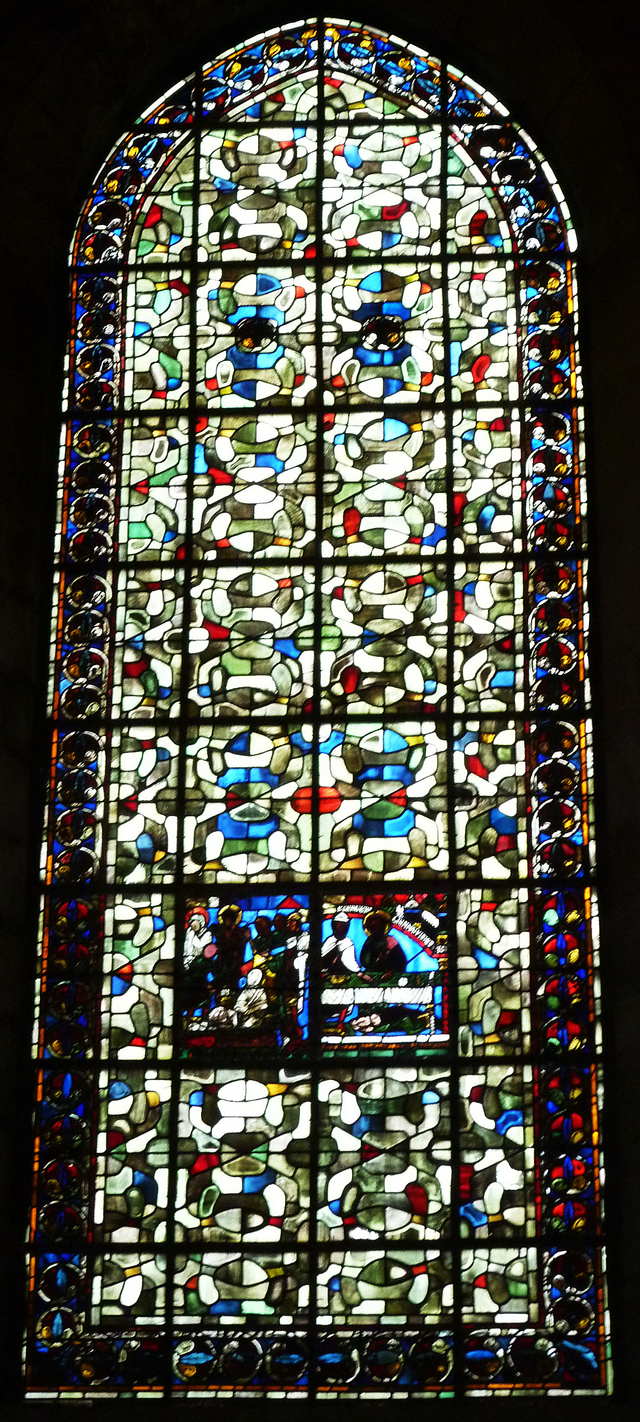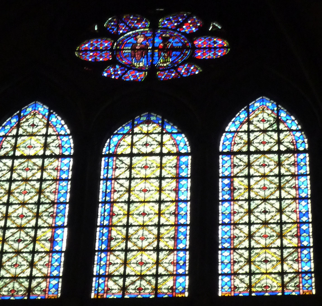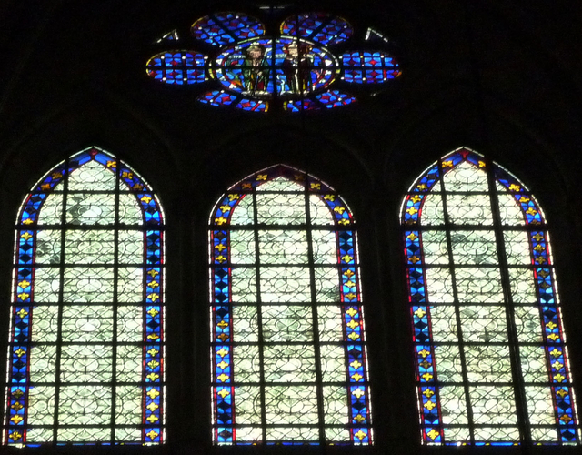 身廊の上の方のステンドグラスは、遠いし、南側にも北側にもたくさんあるし・・・