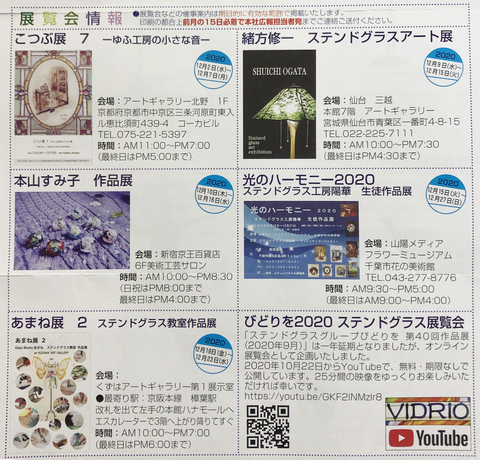 先月号から、東京でリアルで開催のステンドグラス展の案内は皆無です。