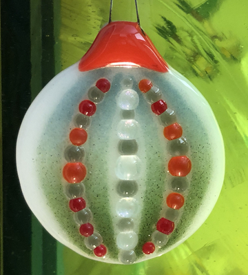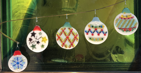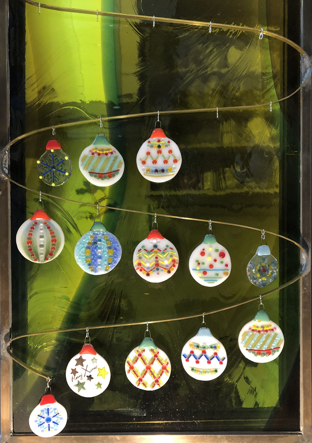 工房のエントランスにある、Xmasツリーに見立てたガラスパネル(高橋園子 作)に、一日一つずつXmasオーナメントを下げていく様子をお伝えしたブログです。