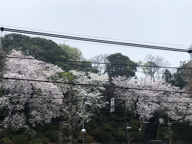 高橋講師の最寄りの駅のホームから撮ったお寺の桜。