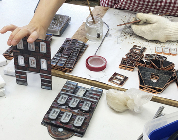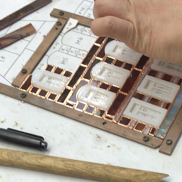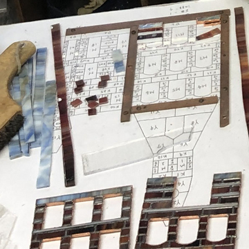 白いガラスをタックフューズ(熔着)して、延々と “窓” を作り続けました。
