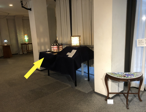 第40回 びどりを作品展 (2021.9 大倉山記念館) 会場では、ここ(黄色の矢印)に展示しました。