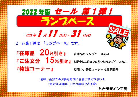 2022年版 セール 第1弾 2022.1.31(月)まで開催中