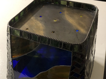 真鍮の天板を染めたり、星の形にくり抜いたりしました。
