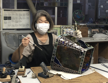 ランプベースの網目状と、同じイメージにガラスを並べました。