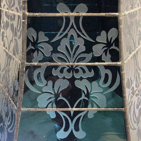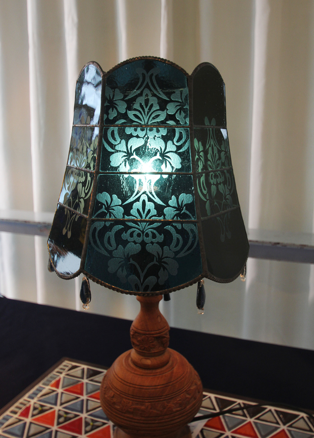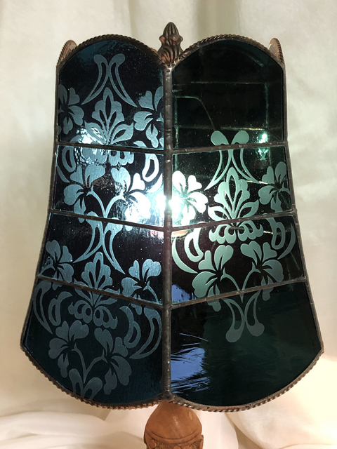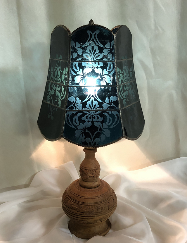 そこで、さっそく 「コールドワーク」 のサンドブラストを使って制作した、ステンドグラスランプをご紹介します。