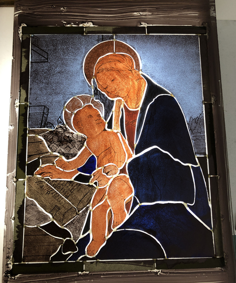サンドロ・ボッティチェリの 「本の聖母」 のステンドグラスです。