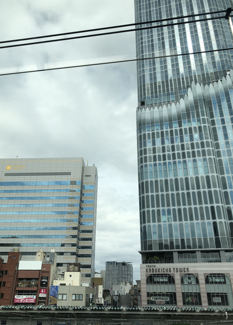 電車の中から写真を撮ろうとしても、高すぎて上まで撮れない…