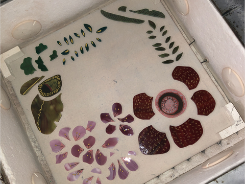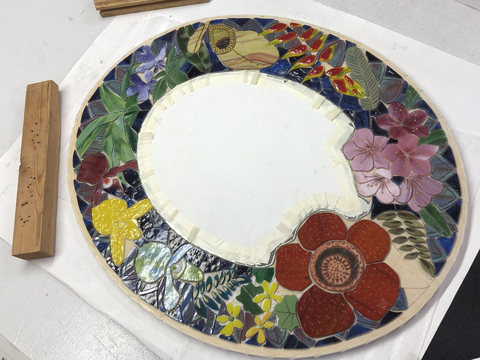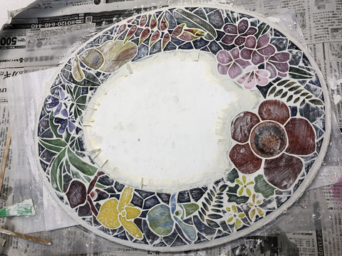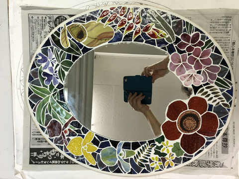 前回のブログでご紹介した、ジャングル植物をモチーフにした、ガラスモザイクのミラーのMakingをご紹介します。