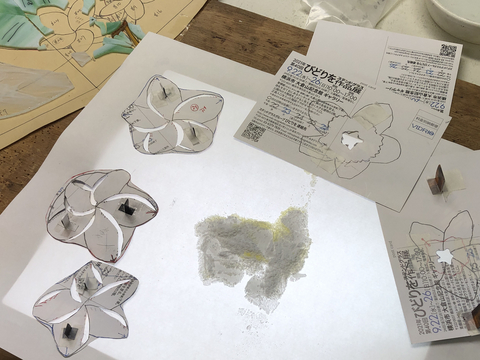 面にまたがっている花びらは、後から調整しながらつけます。