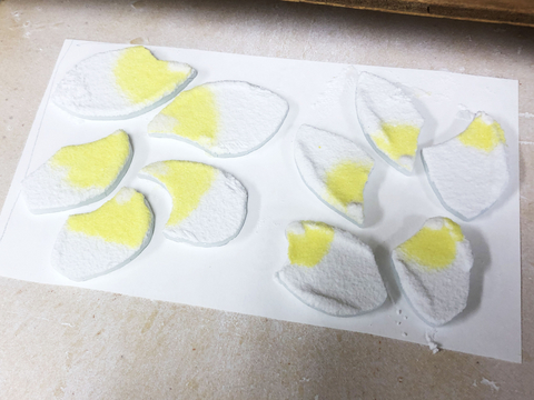 花の中心部分に。黄色のガラスパウダーをのせます。