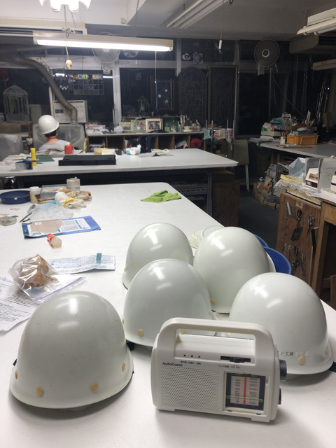 そのあとの余震が怖いのでヘルメットをかぶっていただきました。