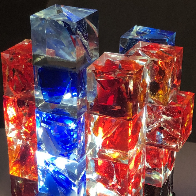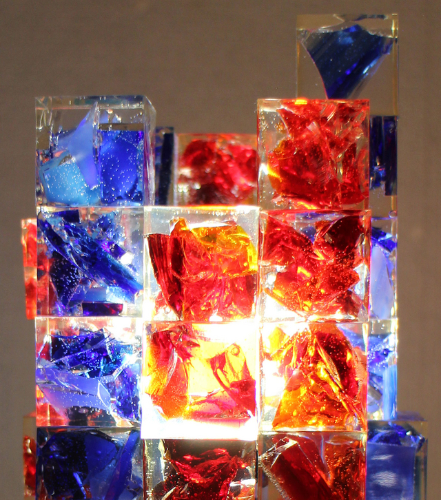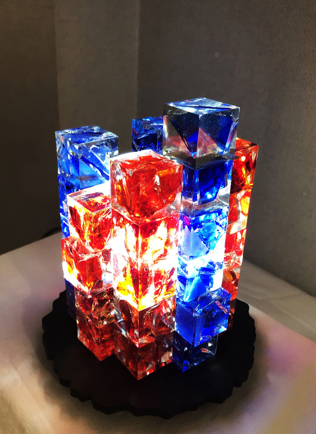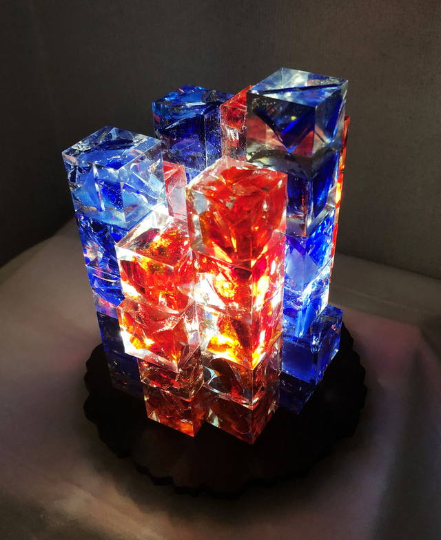 樹脂を注ぎ、固めたものを、積木のようにかさねて