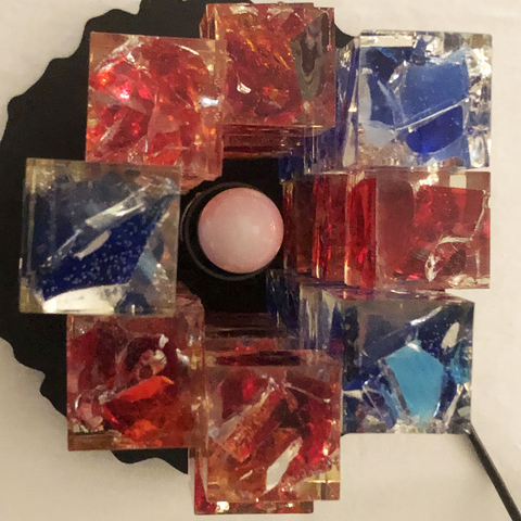 このランプも、ガラスをレジン樹脂に埋め込んでキューブ状に成形した