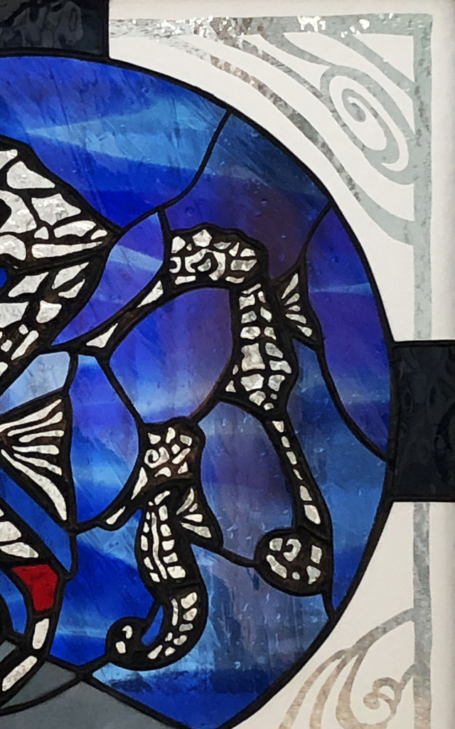 今年の初めにいただいた手ぬぐいをステンドグラスにしてみました。