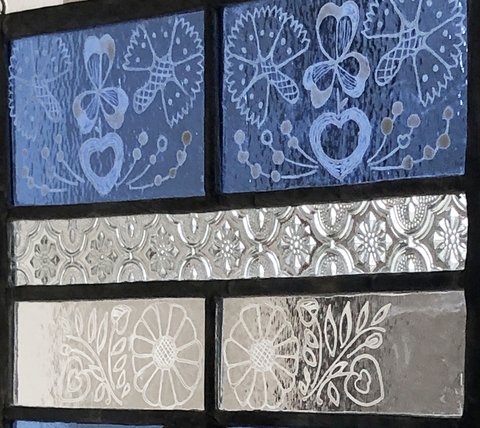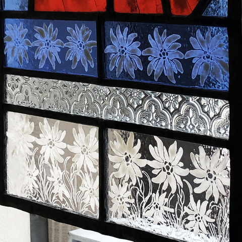 技 法: 絵付けサンドブラスト・鉛線組み