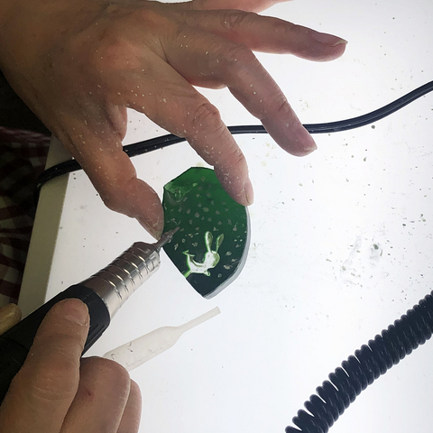 まず被せ(きせ)ガラスの被せ(きせ)を、サンドブラストで抜きます。
