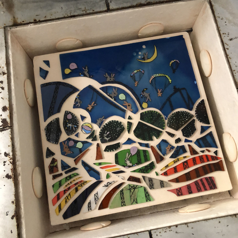 三日月とウサギが印象的なパネル-Making