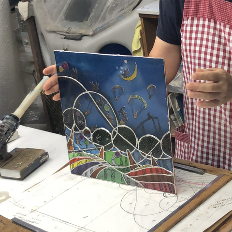 この藤城清治の絵を、ステンドグラス仕立てにした作品をご紹介します。