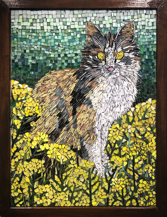 そこで、菜の花が印象的なこのガラスモザイクのパネル作品をご紹介します。
