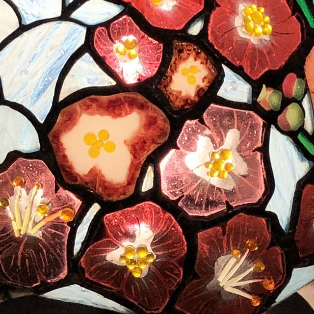 ストリンガーをバーナーで伸ばして花芯を作りツブツブと共にUV接着した。