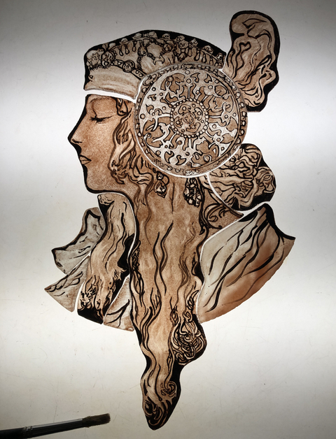 そこで思い出したのが、このミュシャの「ビザンティン風の頭部」。