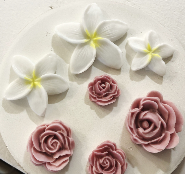 プルメリアやバラ、葉っぱ・・・カタチを焼いてみました。