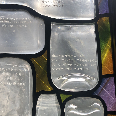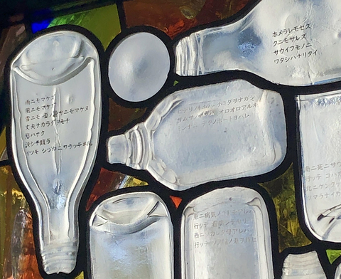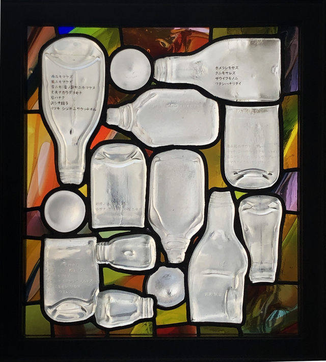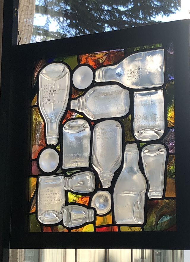 今回は、いろいろなビンを溶かして作った、ステンドグラスパネルをご紹介します。