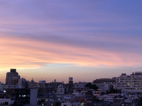 窓からスマホを出して撮っているので、水平に撮れない・・・