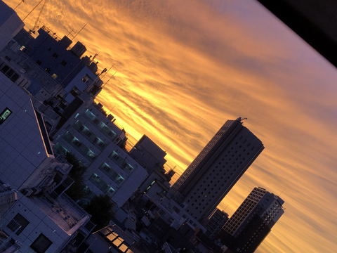 窓からスマホを出して撮っているので、水平に撮れない・・・