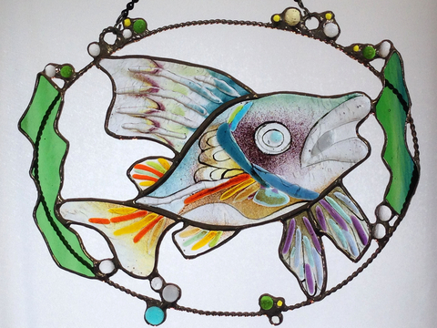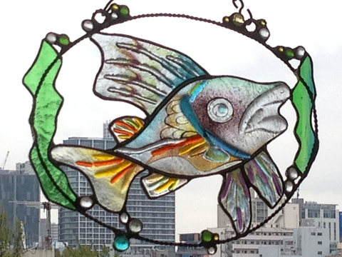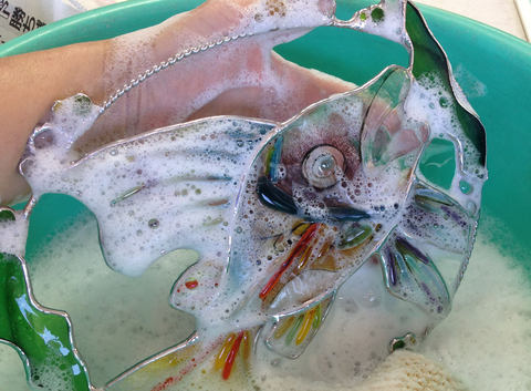 海藻や泡などをアレンジしてウインドウペンダントの出来上がり。