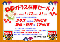 以上、新春 ガラス・部材 セールは、今月末まで開催しておりますので、