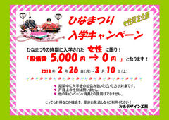 2月26日から 「ひなまつり 入学キャンペーン」 がはじまっています。