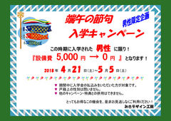 2018年の 「端午の節句 入学キャンペーン」 が始まります!