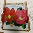 つぼみや花芯は絵付けで線描きしました。