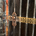 カーテンも手縫い。ベランダのアイアンワーク風の手作りです。
