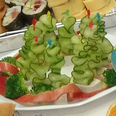 直子さんの「きゅうりのXmasツリー」。土台はサーモンとホタテのテリーヌ。