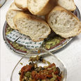 利香さんの「フランスパンとクリームチーズ。オリーブ・トマト乗せ」
