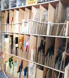 工房に入って右側は、おもにキャセドラルガラスのコーナーです。