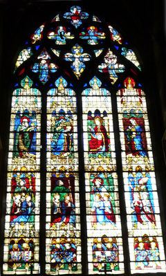 以下は、身廊(もしかしたら後陣のステンドグラスも混じっているかもしれませんが・・・) のステンドグラスです。