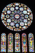 それぞれのトレサリーとランセットの数などで、もうどこのバラ窓がわかるかな。