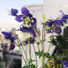 下の写真は、ベランダで咲いた、オダマキです。