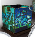 手前の二面はガクアジサイ、裏側の二面は丸いアジサイのデザインの行灯型のランプです。