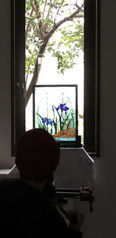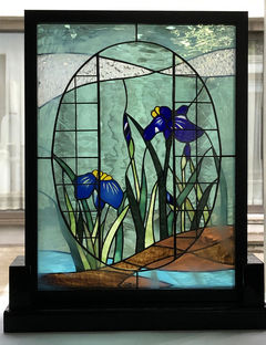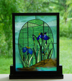 熱血講師のプロフィール「花菖蒲の庭」のステンドグラスパネル