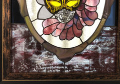 この四隅のガラスは不思議なガラスで、夕日になる前の午後の光だと、下の写真のような温かみを帯びた色味になります。
