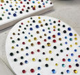 ここにも、ガラス玉やストリンガーを並べて、ボール状のオーナメントをたくさん作りました。