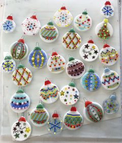 次に、オーナメントに使うために、小さなガラス玉を焼成して制作。