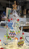 ガラスのツリーは既製品なので、さげるオーナメントの大きさは、あらかじめ計算済みです。