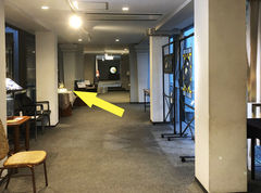 第40回 びどりを作品展 (2021.9 大倉山記念館) 会場では、ここ(黄色の矢印)に展示しました。最終コーナーの左側の窓際でした。