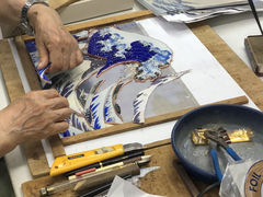 葛飾北斎 富嶽三十六景より神奈川沖浪裏を、ステンドグラスのランプにしたものです。